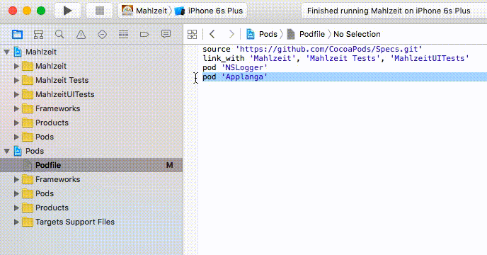 To do this, open the Podfile of your app and add Applanga by typing “pod ‘Applanga’”.