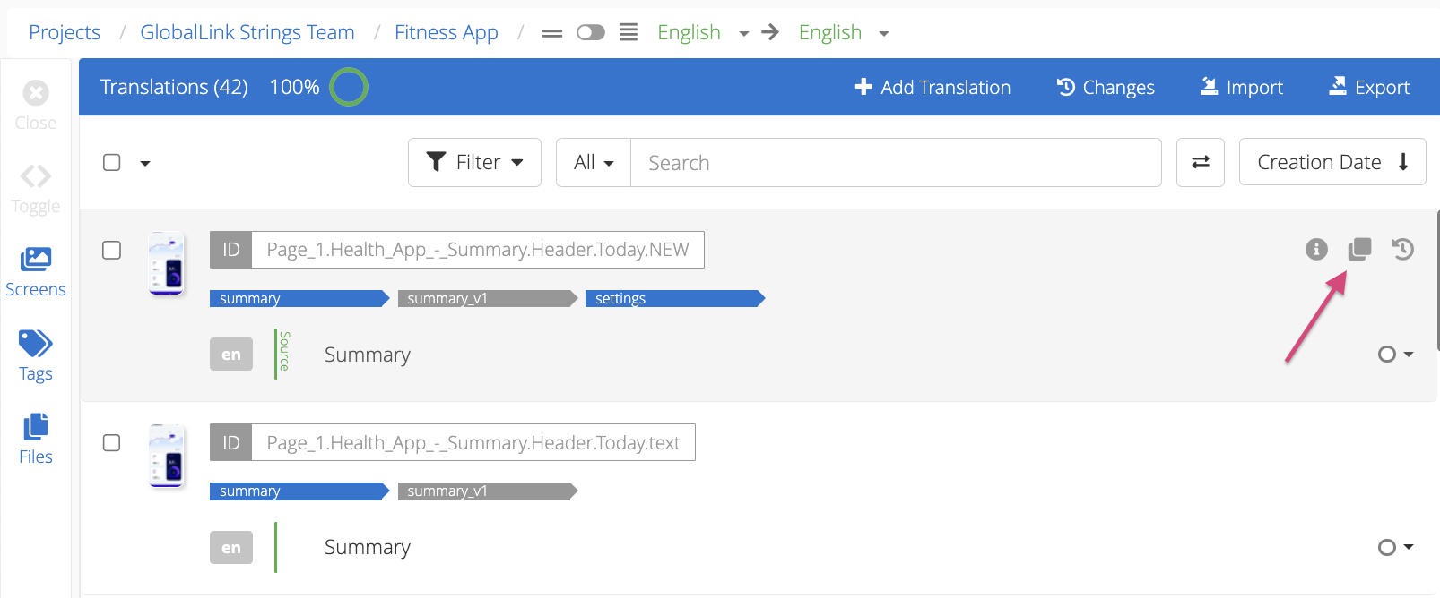 - All uploaded screenshots and the corresponding strings can be tagged to help users track which strings display on which screens.