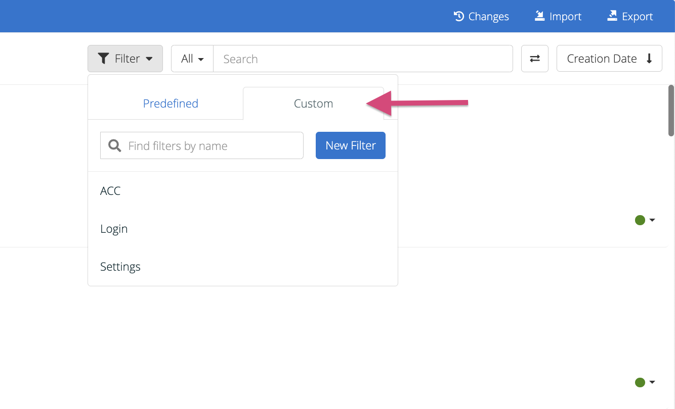 Apply a pre-defined or custom filter to quickly find and manage keys.